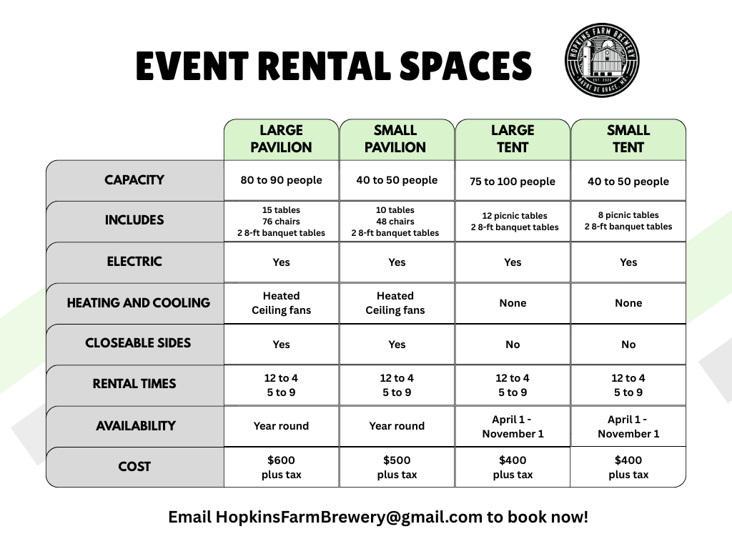 Set up 1/2 hour before and clean up 1/2 hour after each rental session